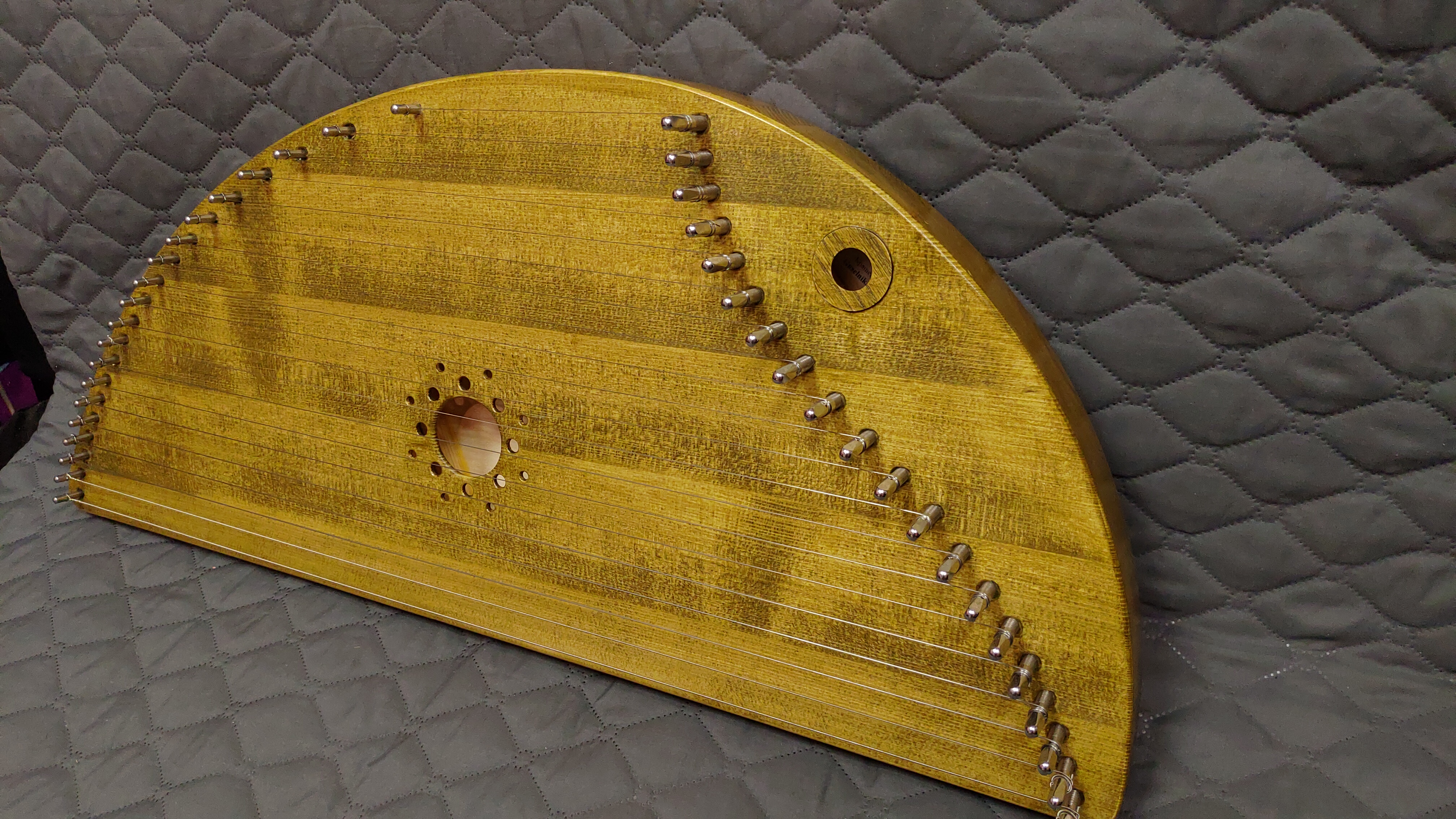 Гусли «Шлемовидные» 20 струнные, имеют полукруглую форму шлема и прекрасные акустические параметры богатые обертонами. Строй – диатонический от ноты «До» малой октавы до ноты «Ля» второй октавы. В пределах этого диапазона, можно менять все ноты на пол тона, в результате, получать требуемую тональность.