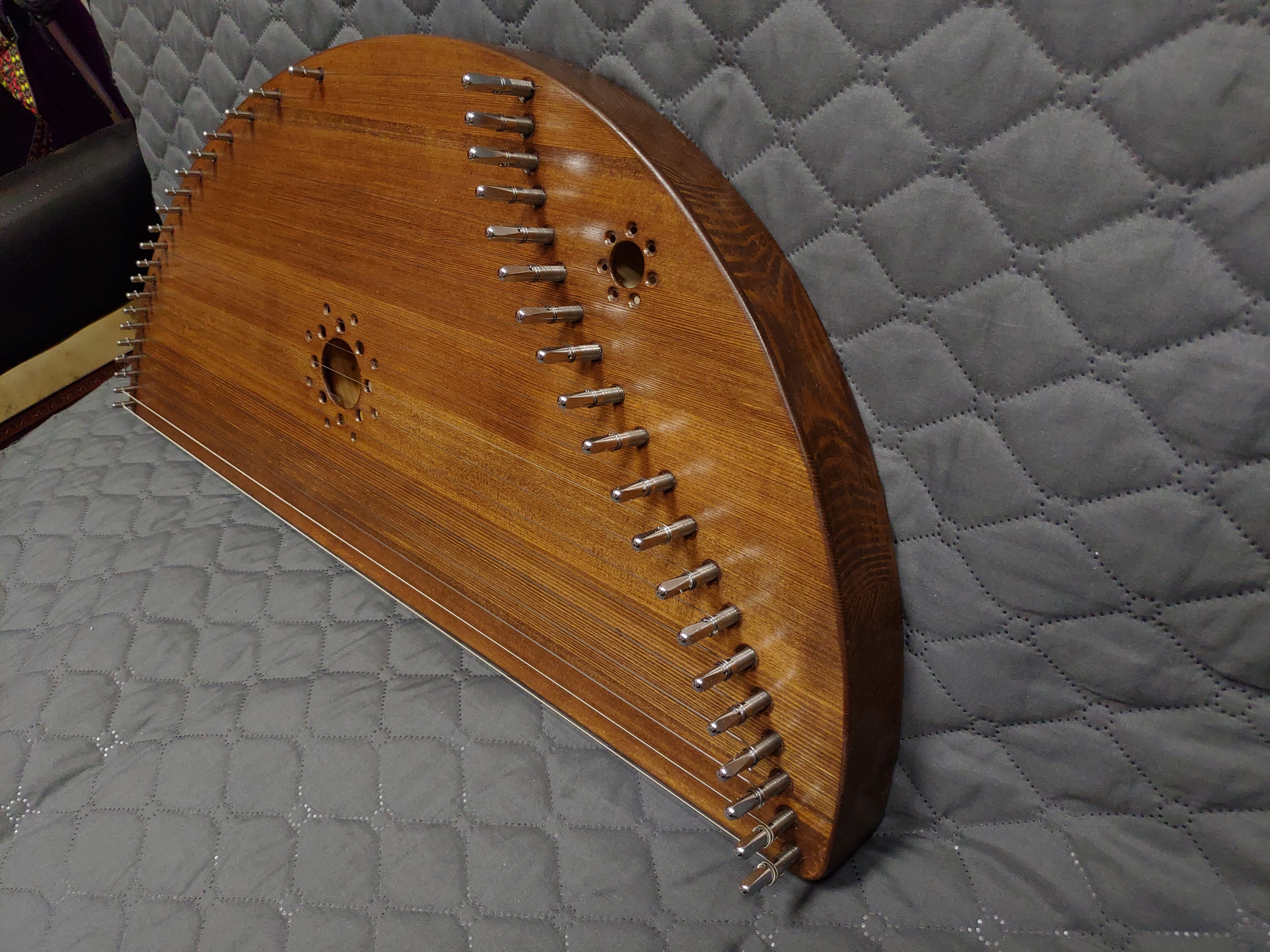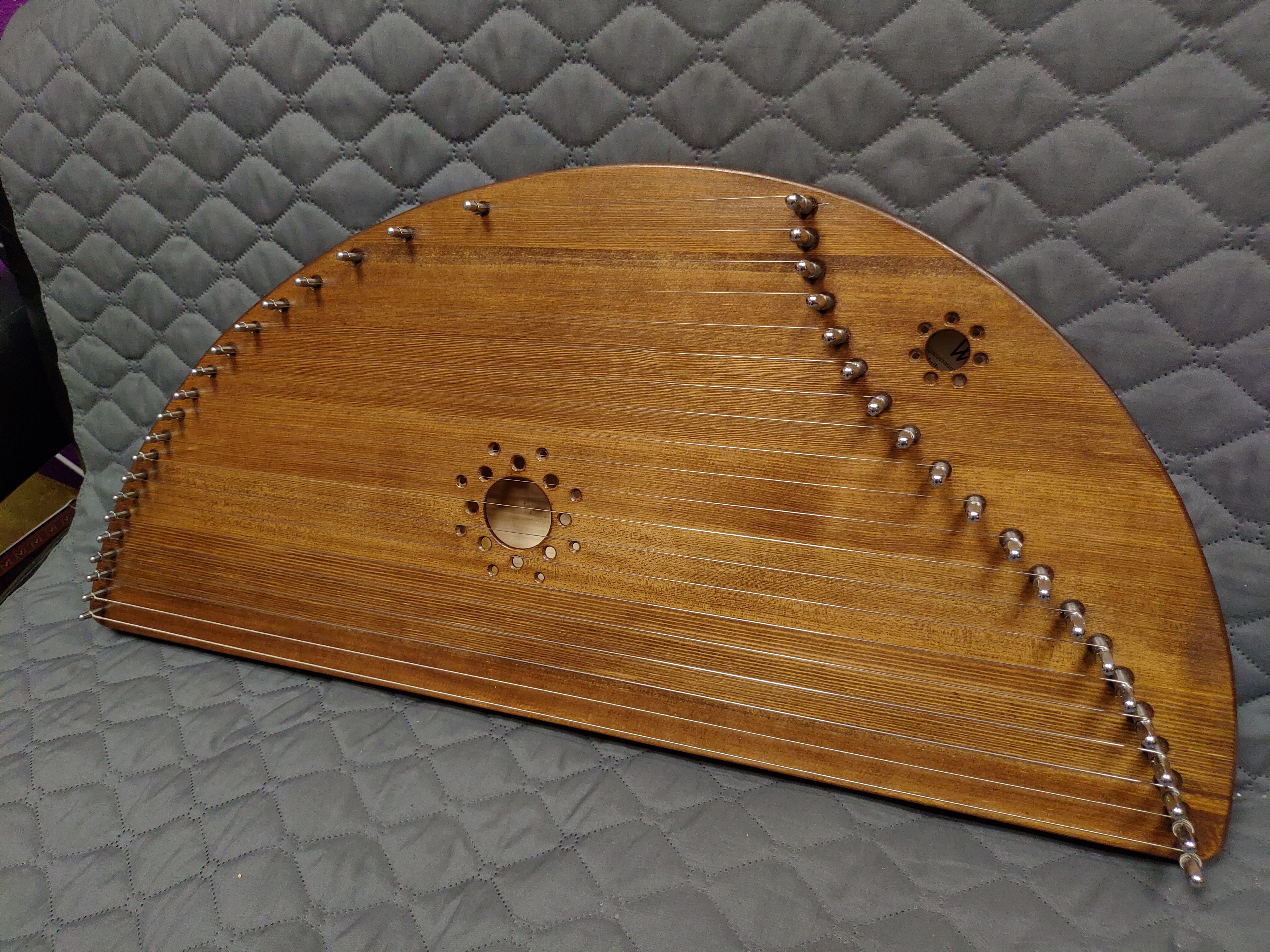 Гусли «Шлемовидные» 20 струнные, имеют полукруглую форму шлема и прекрасные акустические параметры богатые обертонами. Строй – диатонический от ноты «До» малой октавы до ноты «Ля» второй октавы. В пределах этого диапазона, можно менять все ноты на пол тона, в результате, получать требуемую тональность.