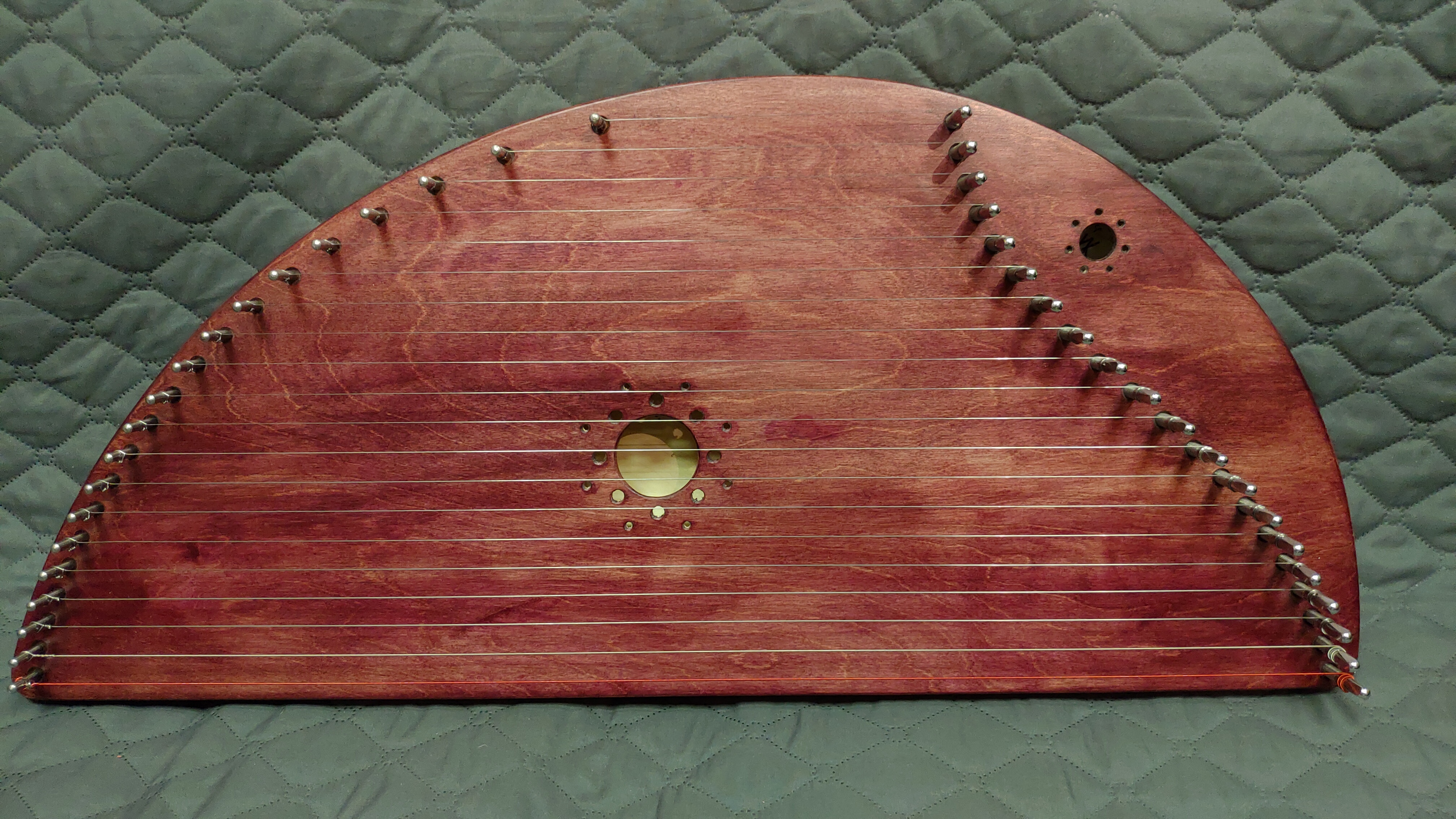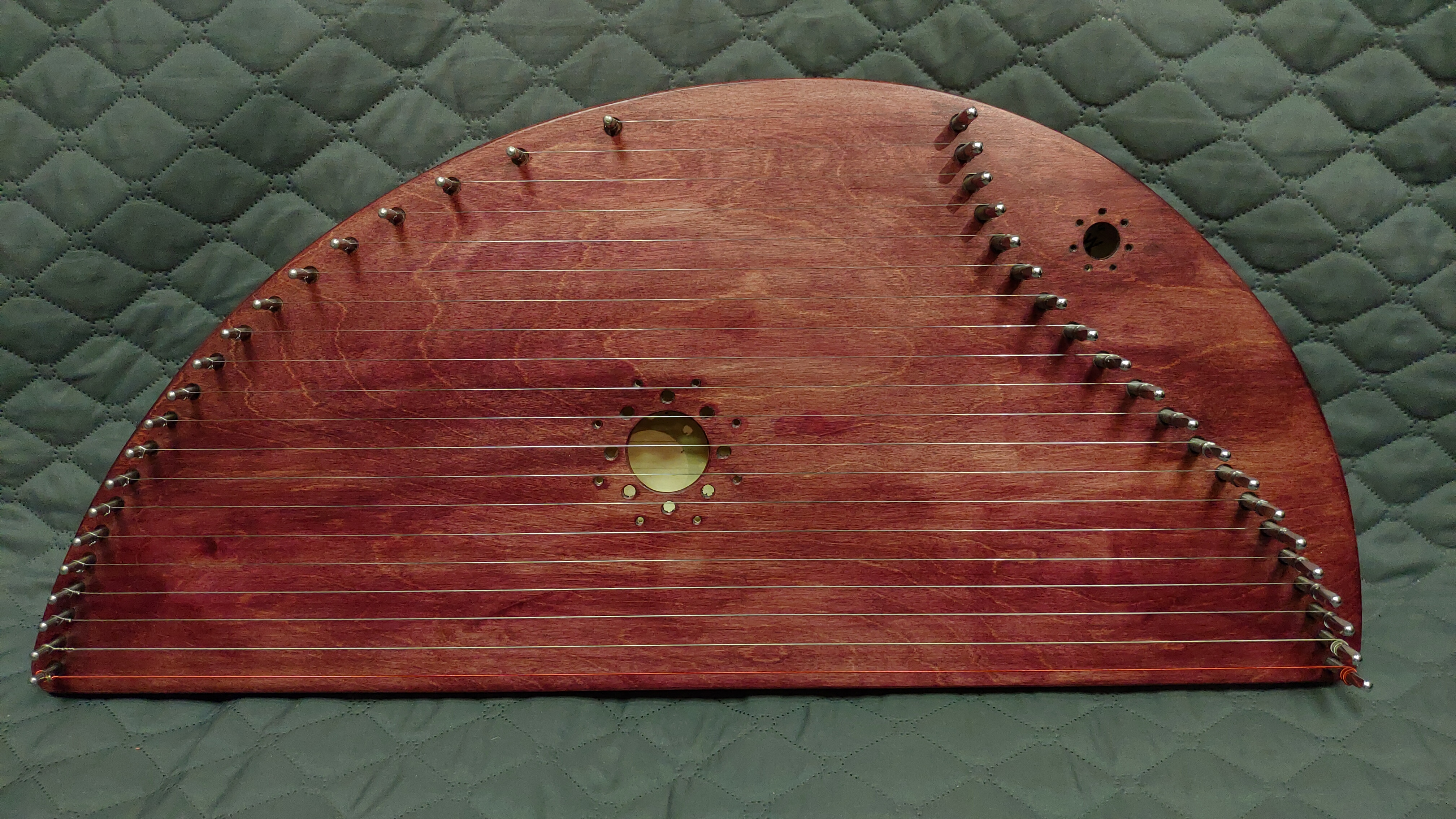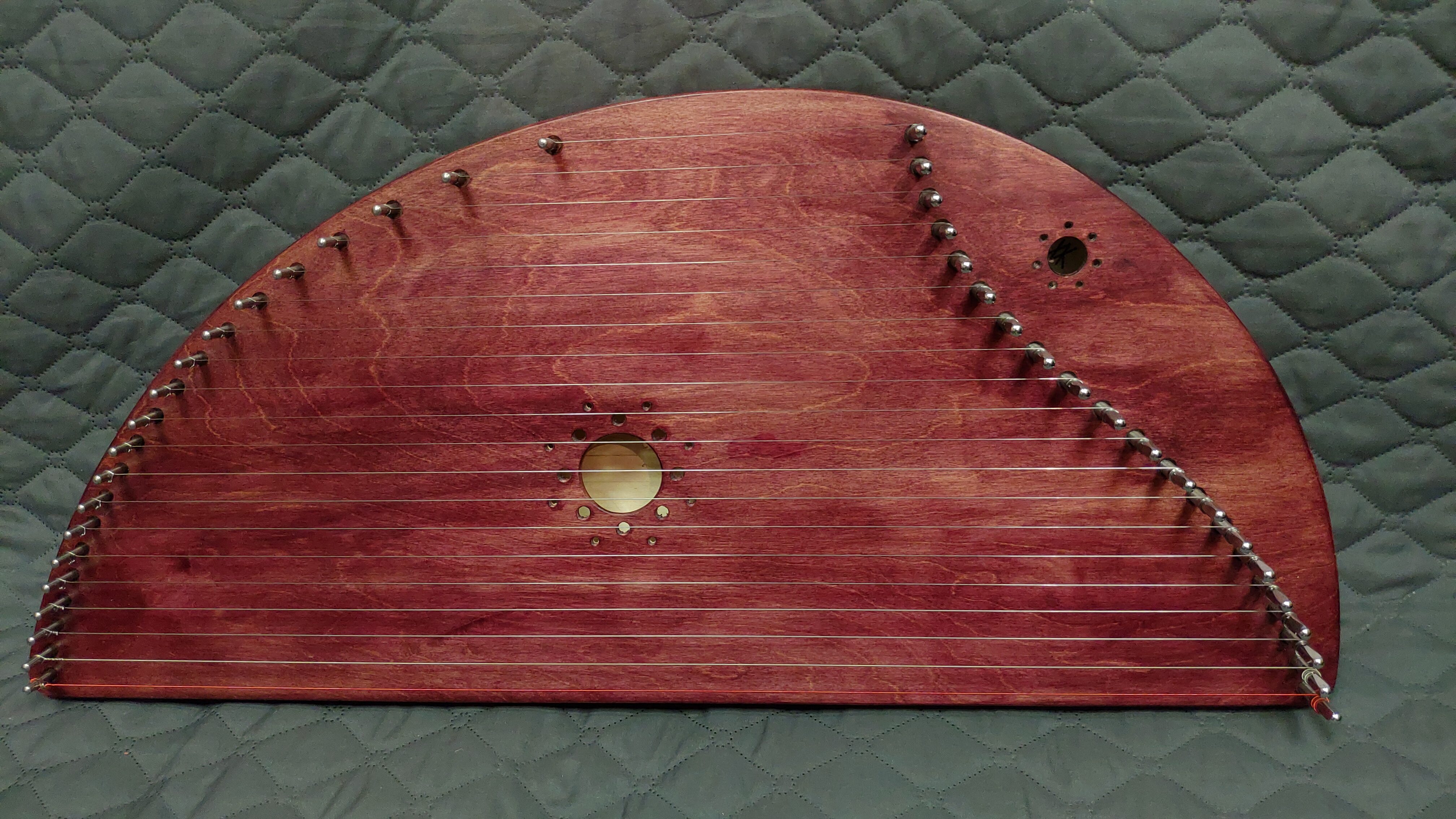 Гусли 2-ух камерные или 2-ух резонаторные, т.е. имеют две полости. Такая конструкция придаёт звучанию инструмента особый глубокий тембр. Верхняя и нижняя деки гуслей выполнены из высококачественной клееной березы. Рама - бук.